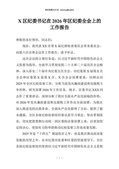 / 【七哥公文】2026年:X区纪委书记在2026年区纪委全会上的工作报告+更多免费公文+VX:QiGeGongWen2024