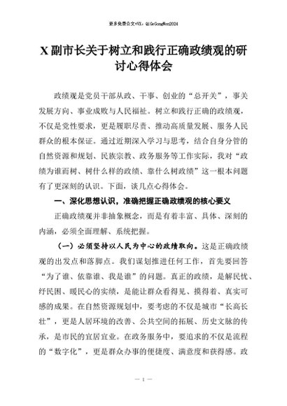 / 【七哥公文】2026年:X副市长关于树立和践行正确政绩观的研讨心得体会+更多免费公文+VX:QiGeGongWen2024