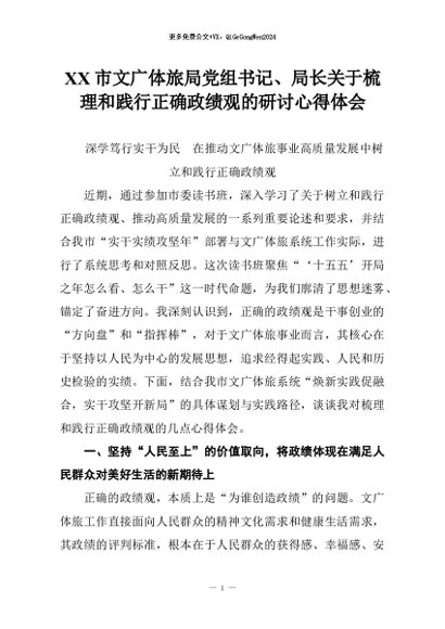 【七哥公文】2026年:XX市文广体旅局党组书记、局长关于梳理和践行正确政绩观的研讨心得体会+更多免费公文+VX:QiGeGongWen2024