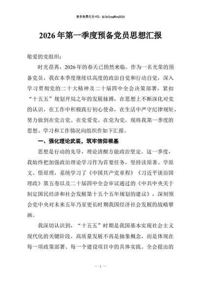 / 【七哥公文】2026年:2026年第一季度预备党员思想汇报+更多免费公文+VX:QiGeGongWen2024