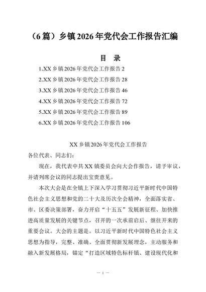 / 【七哥公文】2026年:(6篇)乡镇2026年党代会工作报告汇编+更多免费公文+VX:QiGeGongWen2024