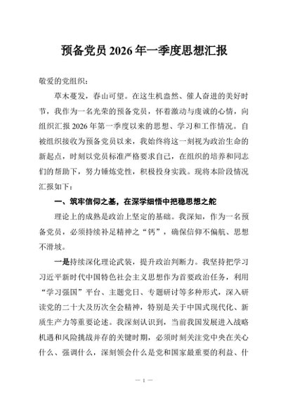 / 【七哥公文】2026年:预备党员2026年一季度思想汇报+更多免费公文+VX:QiGeGongWen2024