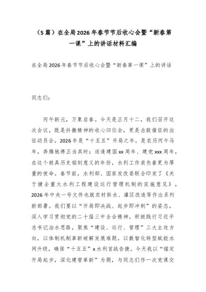【七哥公文】2026年:(5篇)在全局2026年春节节后收心会暨“新春第一课”上的讲话材料汇编_副本+更多免费公文+VX:QiGeGongWen2024