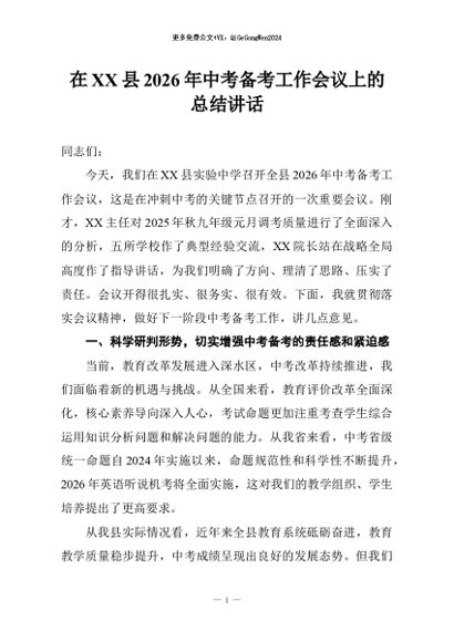 / 【七哥公文】2026年:在XX县2026年中考备考工作会议上的总结讲话+更多免费公文+VX:QiGeGongWen2024