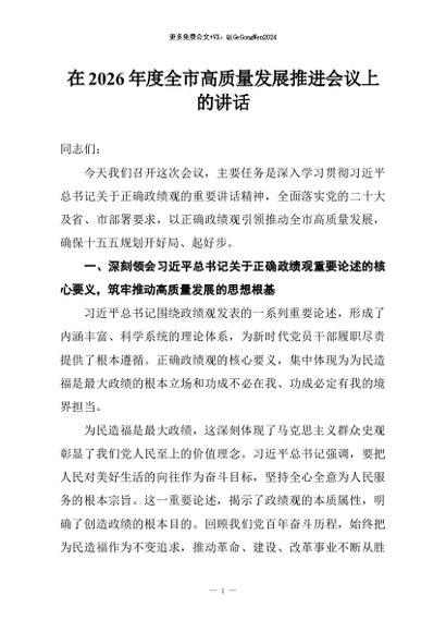 / 【七哥公文】2026年:在2026年度全市高质量发展推进会议上的讲话+更多免费公文+VX:QiGeGongWen2024