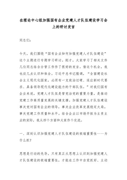 【七哥公文】2026年:在理论中心组加强国有企业党建人才队伍建设学习会上的研讨发言_副本+更多免费公文+VX:QiGeGongWen2024