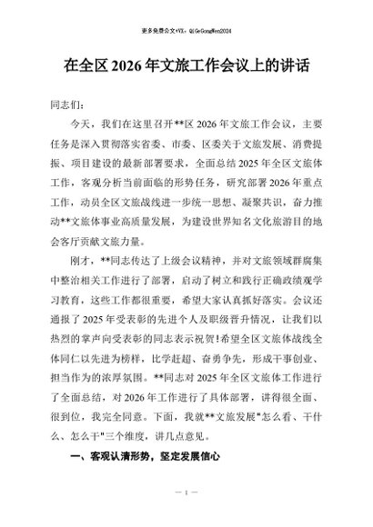/ 【七哥公文】2026年:在全区2026年文旅工作会议上的讲话+更多免费公文+VX:QiGeGongWen2024