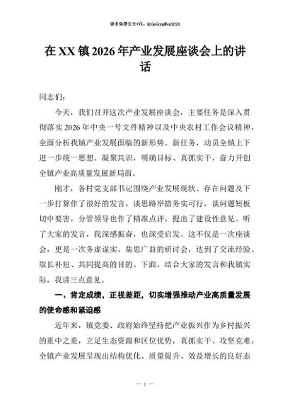/ 【七哥公文】2026年:在XX镇2026年产业发展座谈会上的讲话+更多免费公文+VX:QiGeGongWen2024