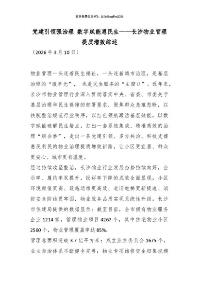 【七哥公文】2026年:党建引领强治理 数字赋能惠民生——长沙物业管理提质增效综述_副本+更多免费公文+VX:QiGeGongWen2024