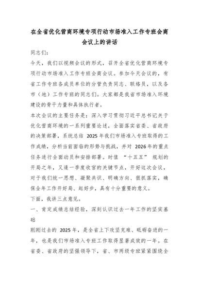 【七哥公文】2026年:在全省优化营商环境专项行动市场准入工作专班会商会议上的讲话_副本+更多免费公文+VX:QiGeGongWen2024