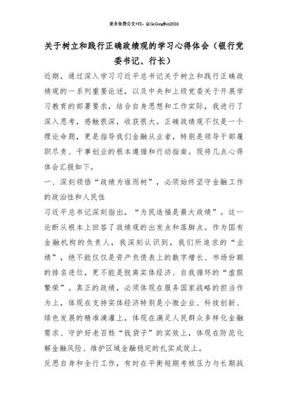 【七哥公文】2026年:关于树立和践行正确政绩观的学习心得体会(银行党委书记、行长)_副本+更多免费公文+VX:QiGeGongWen2024
