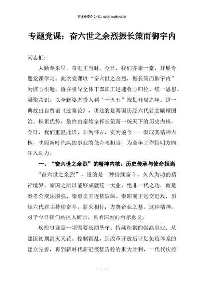 【七哥公文】2026年:专题党课:奋六世之余烈振长策而御宇内+更多免费公文+VX:QiGeGongWen2024