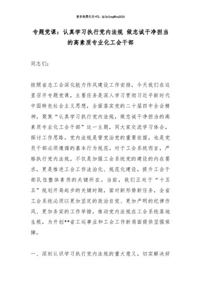 【七哥公文】2026年:专题党课:认真学习执行党内法规 做忠诚干净担当的高素质专业化工会干部_副本+更多免费公文+VX:QiGeGongWen2024