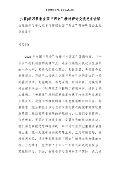 【七哥公文】2026年:(3篇)学习贯彻全国“两会”精神研讨交流发言讲话_副本+更多免费公文+VX:QiGeGongWen2024