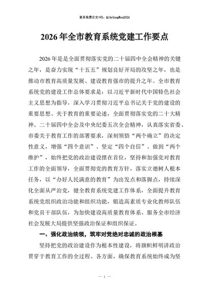 / 【七哥公文】2026年:2026年全市教育系统党建工作要点+更多免费公文+VX:QiGeGongWen2024