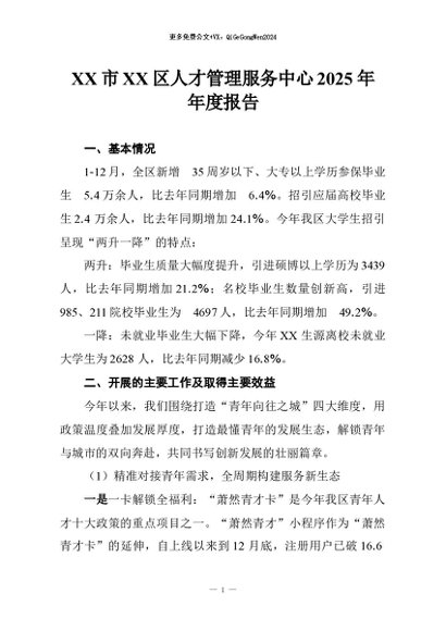 / 【七哥公文】2026年:XX市XX区人才管理服务中心2025年年度报告+更多免费公文+VX:QiGeGongWen2024