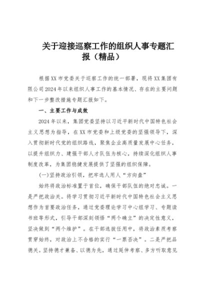 / 【七哥公文】2025年:关于迎接巡察工作的组织人事专题汇报(精品)+更多免费公文+VX:QiGeGongWen2024