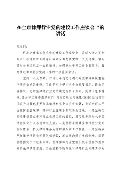 / 【七哥公文】2025年:在全市律师行业党的建设工作座谈会上的讲话+更多免费公文+VX:QiGeGongWen2024