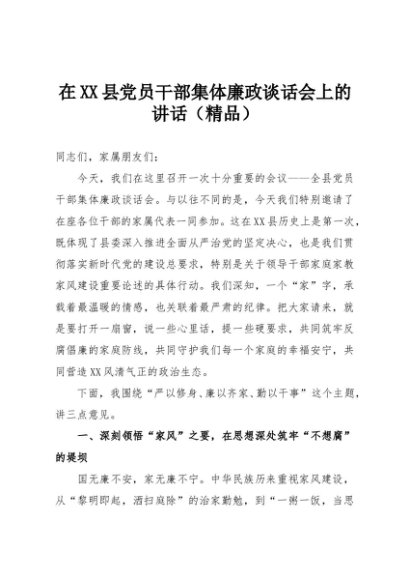 / 【七哥公文】2025年:在XX县党员干部集体廉政谈话会上的讲话(精品)+更多免费公文+VX:QiGeGongWen2024