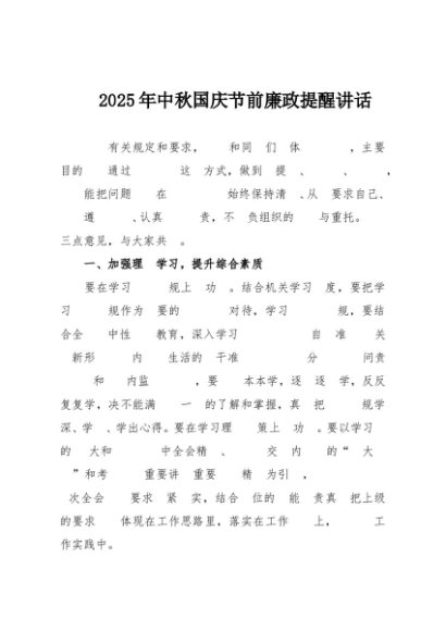 / 【七哥公文】2025年:2025年中秋国庆节前廉政提醒讲话+更多免费公文+VX:QiGeGongWen2024