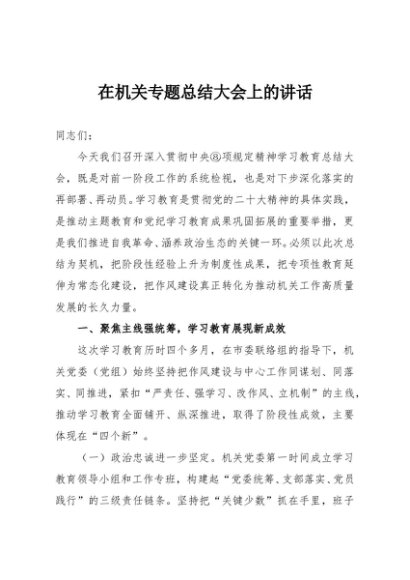 / 【七哥公文】2025年:在机关专题总结大会上的讲话+更多免费公文+VX:QiGeGongWen2024