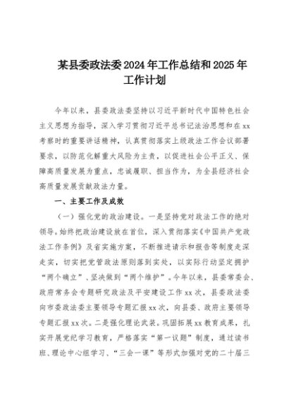 / 【七哥公文】2025年:某县委政法委2024年工作总结和2025年工作计划+更多免费公文+VX:QiGeGongWen2024