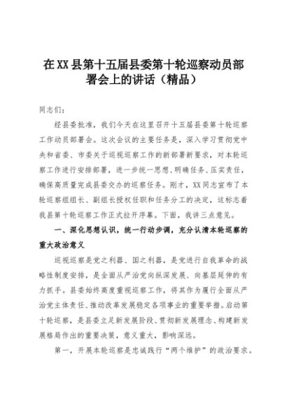 【七哥公文】2025年:在XX县第十五届县委第十轮巡察动员部署会上的讲话(精品)+更多免费公文+VX:QiGeGongWen2024