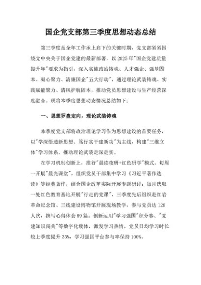 / 【七哥公文】2025年:国企党支部第三季度思想动态总结+更多免费公文+VX:QiGeGongWen2024