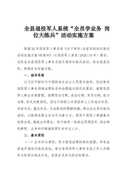 【七哥公文】2025年:全县退役军人系统“全员学业务 岗位大练兵”活动实施方案+更多免费公文+VX:QiGeGongWen2024