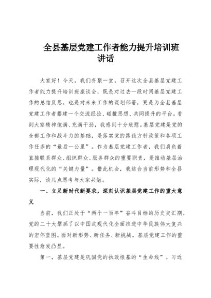 / 【七哥公文】2025年:全县基层党建工作者能力提升培训班讲话+更多免费公文+VX:QiGeGongWen2024