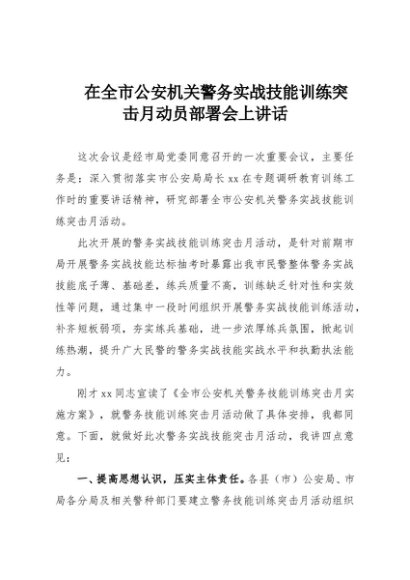 【七哥公文】2025年:在全市公安机关警务实战技能训练突击月动员部署会上讲话+更多免费公文+VX:QiGeGongWen2024