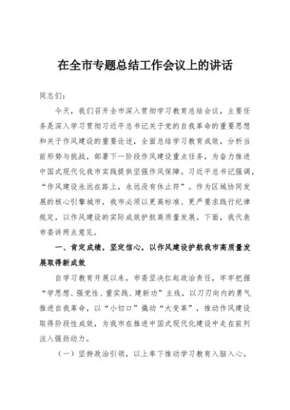 / 【七哥公文】2025年:在全市专题总结工作会议上的讲话+更多免费公文+VX:QiGeGongWen2024