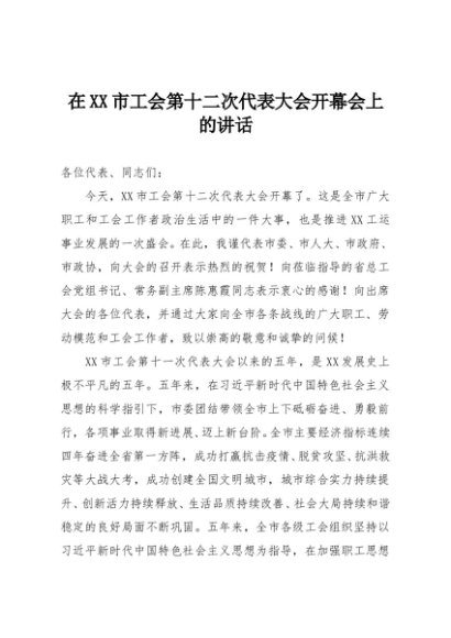 / 【七哥公文】2025年:在XX市工会第十二次代表大会开幕会上的讲话+更多免费公文+VX:QiGeGongWen2024