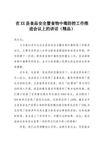 【七哥公文】2025年:在XX县食品安全暨食物中毒防控工作推进会议上的讲话(精品)+更多免费公文+VX:QiGeGongWen2024