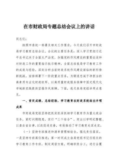 / 【七哥公文】2025年:在市财政局专题总结会议上的讲话+更多免费公文+VX:QiGeGongWen2024