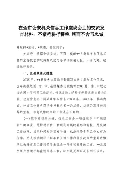 【七哥公文】2025年:在全市公安机关信息工作座谈会上的交流发言材料:不辍笔耕抒警魂 锲而不舍写忠诚+更多免费公文+VX:QiGeGongWen2024