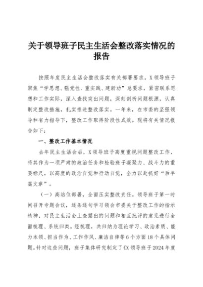 / 【七哥公文】2025年:关于领导班子民主生活会整改落实情况的报告+更多免费公文+VX:QiGeGongWen2024