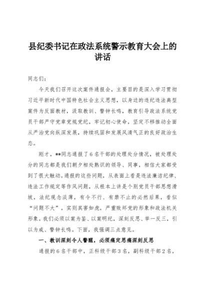 / 【七哥公文】2025年:县纪委书记在政法系统警示教育大会上的讲话+更多免费公文+VX:QiGeGongWen2024