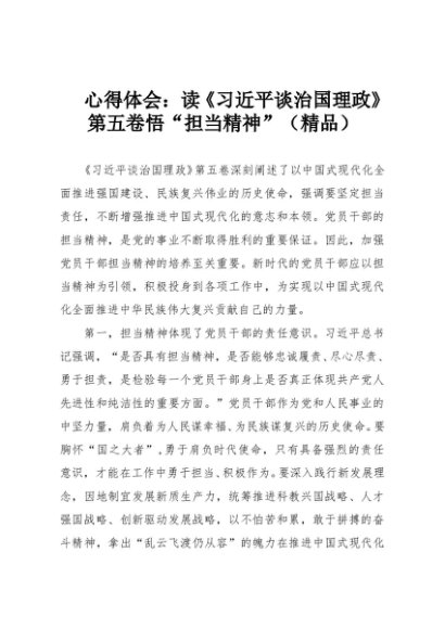 【七哥公文】2025年:心得体会:读《习近平谈治国理政》第五卷悟“担当精神”(精品)+更多免费公文+VX:QiGeGongWen2024
