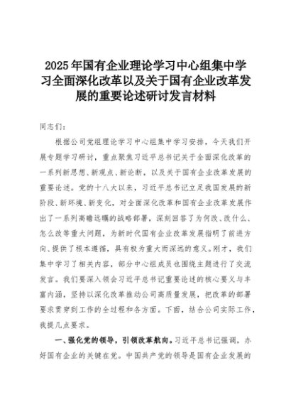 【七哥公文】2025年:2025年国有企业理论学习中心组集中学习全面深化改革以及关于国有企业改革发展的重要论述研讨发言材料+更多免费公文+VX:QiGeGongWen2024