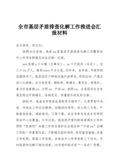 / 【七哥公文】2025年:全市基层矛盾排查化解工作推进会汇报材料+更多免费公文+VX:QiGeGongWen2024