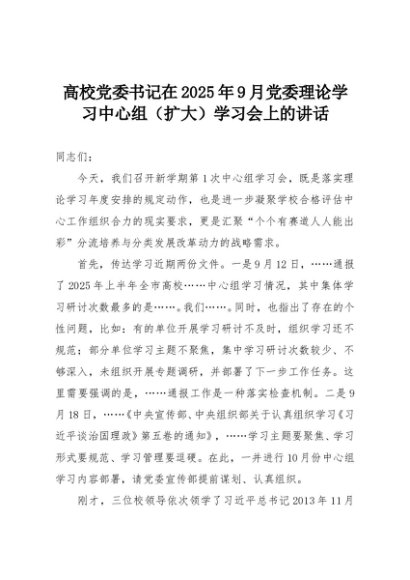 【七哥公文】2025年:高校党委书记在2025年9月党委理论学习中心组(扩大)学习会上的讲话+更多免费公文+VX:QiGeGongWen2024