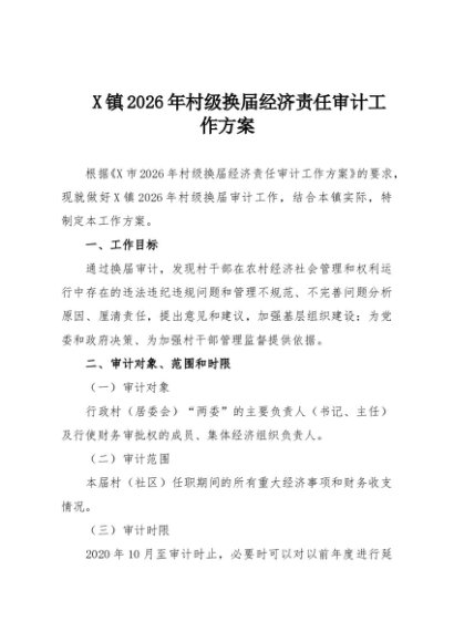 / 【七哥公文】2025年:X镇2026年村级换届经济责任审计工作方案+更多免费公文+VX:QiGeGongWen2024
