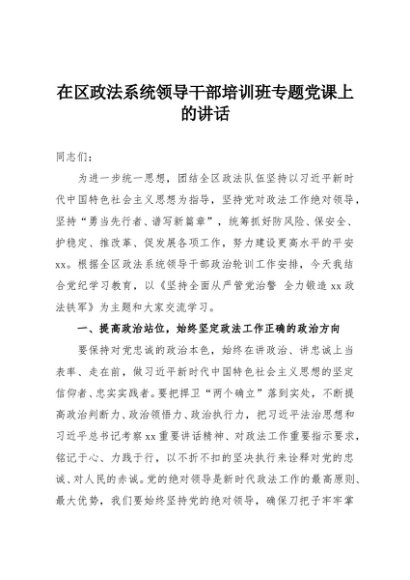 / 【七哥公文】2025年:在区政法系统领导干部培训班专题党课上的讲话+更多免费公文+VX:QiGeGongWen2024