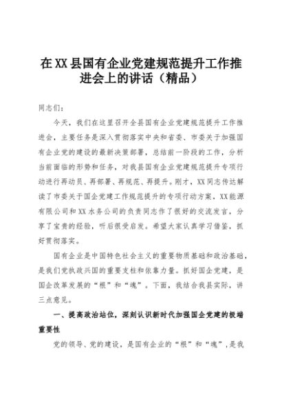 【七哥公文】2025年:在XX县国有企业党建规范提升工作推进会上的讲话(精品)+更多免费公文+VX:QiGeGongWen2024