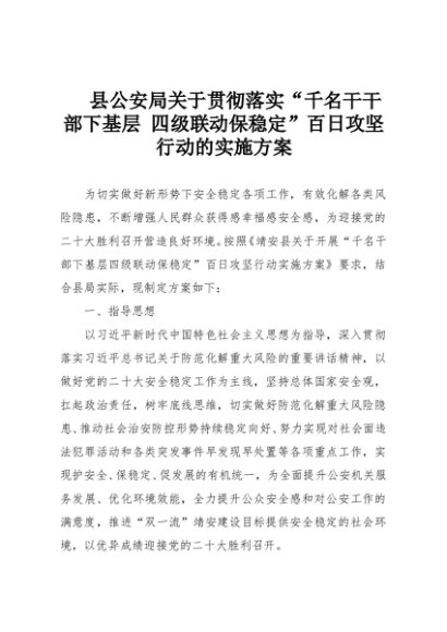 【七哥公文】2025年:县公安局关于贯彻落实“千名干干部下基层 四级联动保稳定”百日攻坚行动的实施方案+更多免费公文+VX:QiGeGongWen2024
