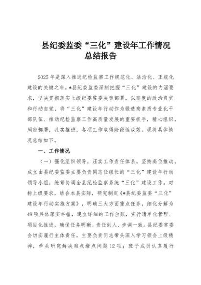/ 【七哥公文】2025年:县纪委监委“三化”建设年工作情况总结报告+更多免费公文+VX:QiGeGongWen2024