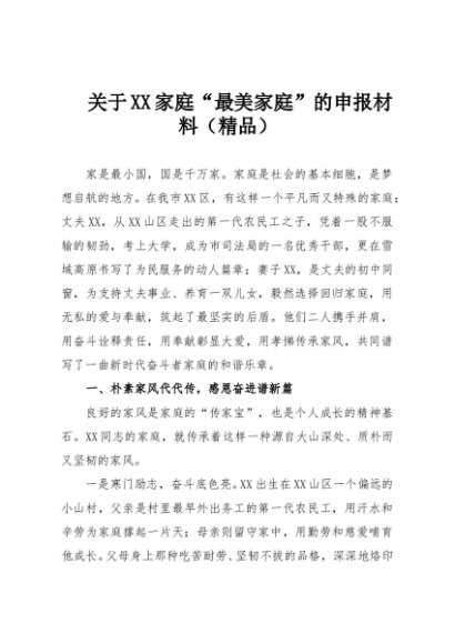 / 【七哥公文】2025年:关于XX家庭“最美家庭”的申报材料(精品)+更多免费公文+VX:QiGeGongWen2024