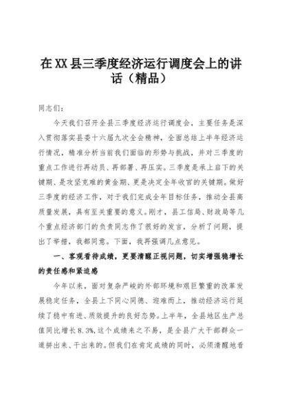 / 【七哥公文】2025年:在XX县三季度经济运行调度会上的讲话(精品)+更多免费公文+VX:QiGeGongWen2024