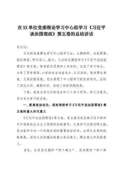 【七哥公文】2025年:在XX单位党委理论学习中心组学习《习近平谈治国理政》第五卷的总结讲话+更多免费公文+VX:QiGeGongWen2024